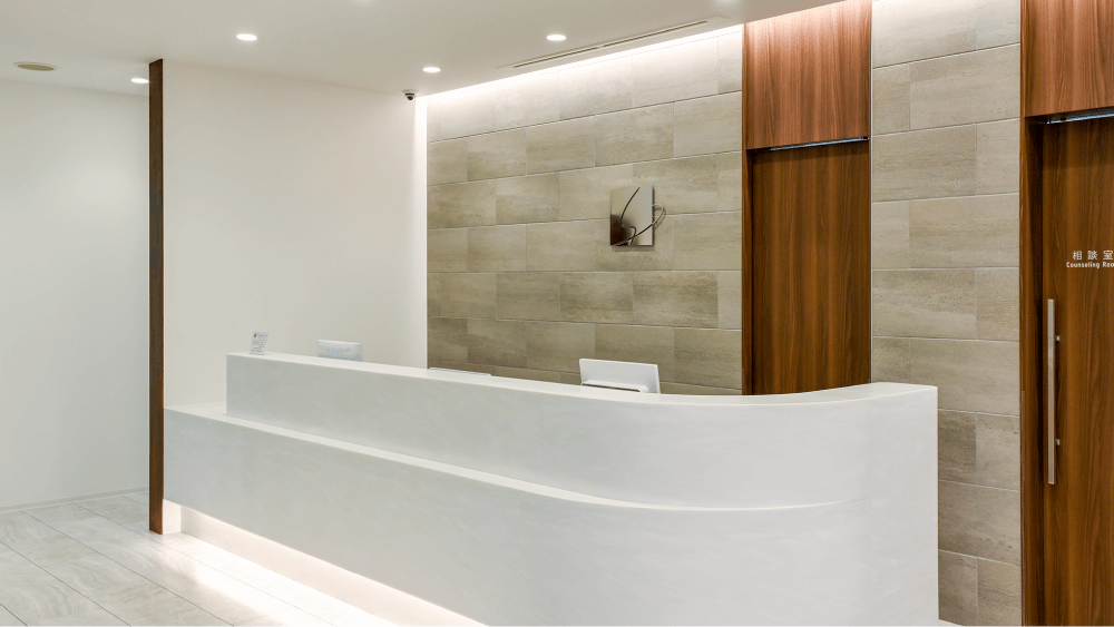 風通しのよい対応ができるよう、受付は開放的な空間としました。来院された方1人1人にスタッフが笑顔でお迎えいたします。